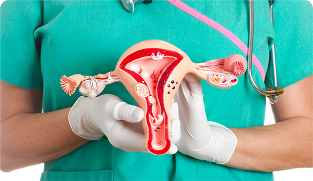 The uterus or womb, a pear-shaped organ, is located in the pelvis between the