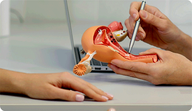 Ovaries are two almond-shaped egg-producing female reproductive organs situat
